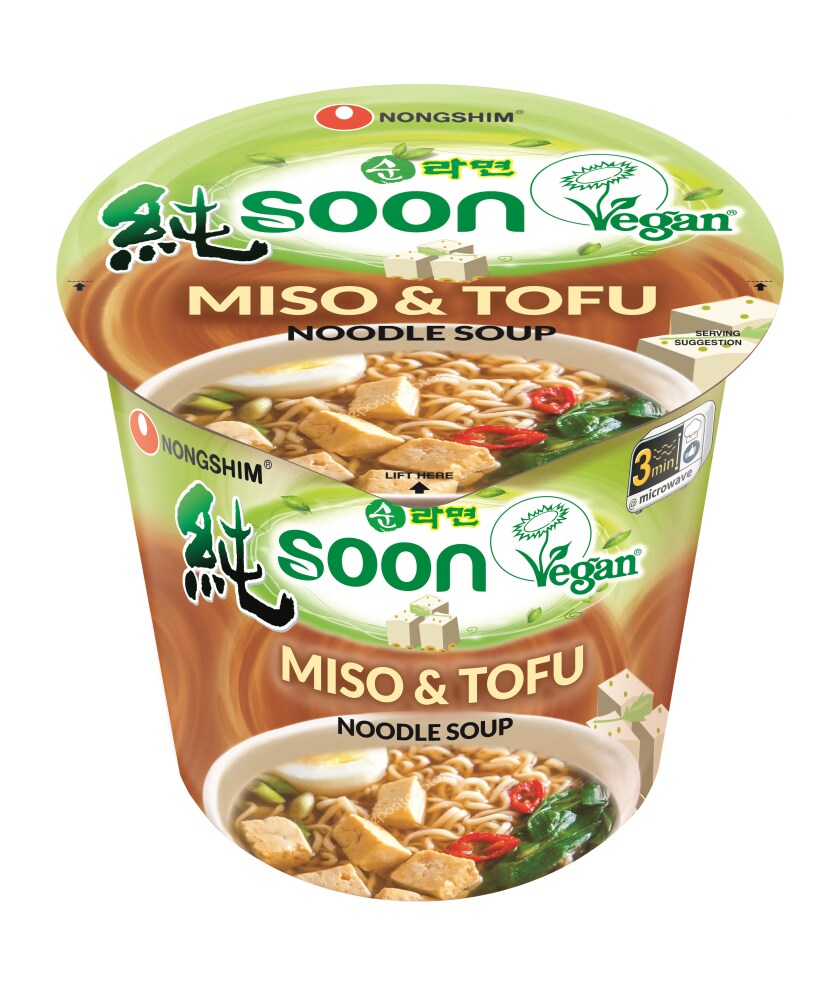 Nongshim Soon Miso and Tofu Veggie Noodle Soup is made with 100% vegan ingredients. It is here and it is delicious! The vegetable broth with miso and tofu flavor has its own simple, yet hearty flavors that even the meat lovers will enjoy.