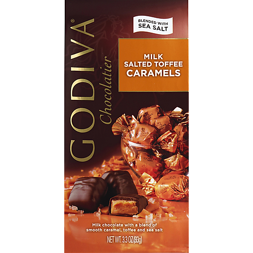 - The product category for Godiva, Milk Salted Toffee, Caramels, Caramels is Candy & Chocolate.