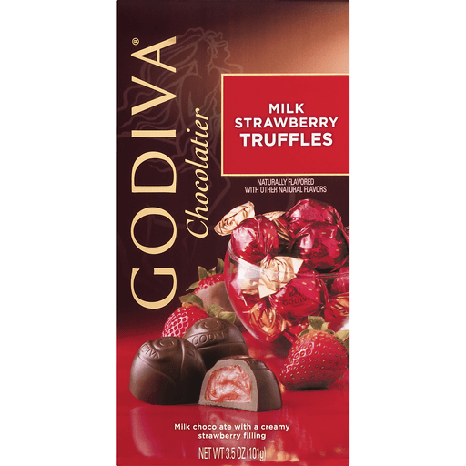 - The manufacturer of Truffles, Milk Strawberry is Godiva.