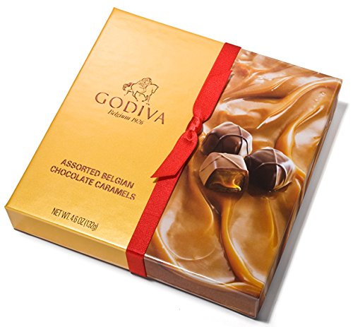 GODIVA Trayed Caramel Gift Box. Assorted Belgian Chocolate Caramels. Holidays Classics. The iconic box adorned with a festive band of ribbon. 132 g.