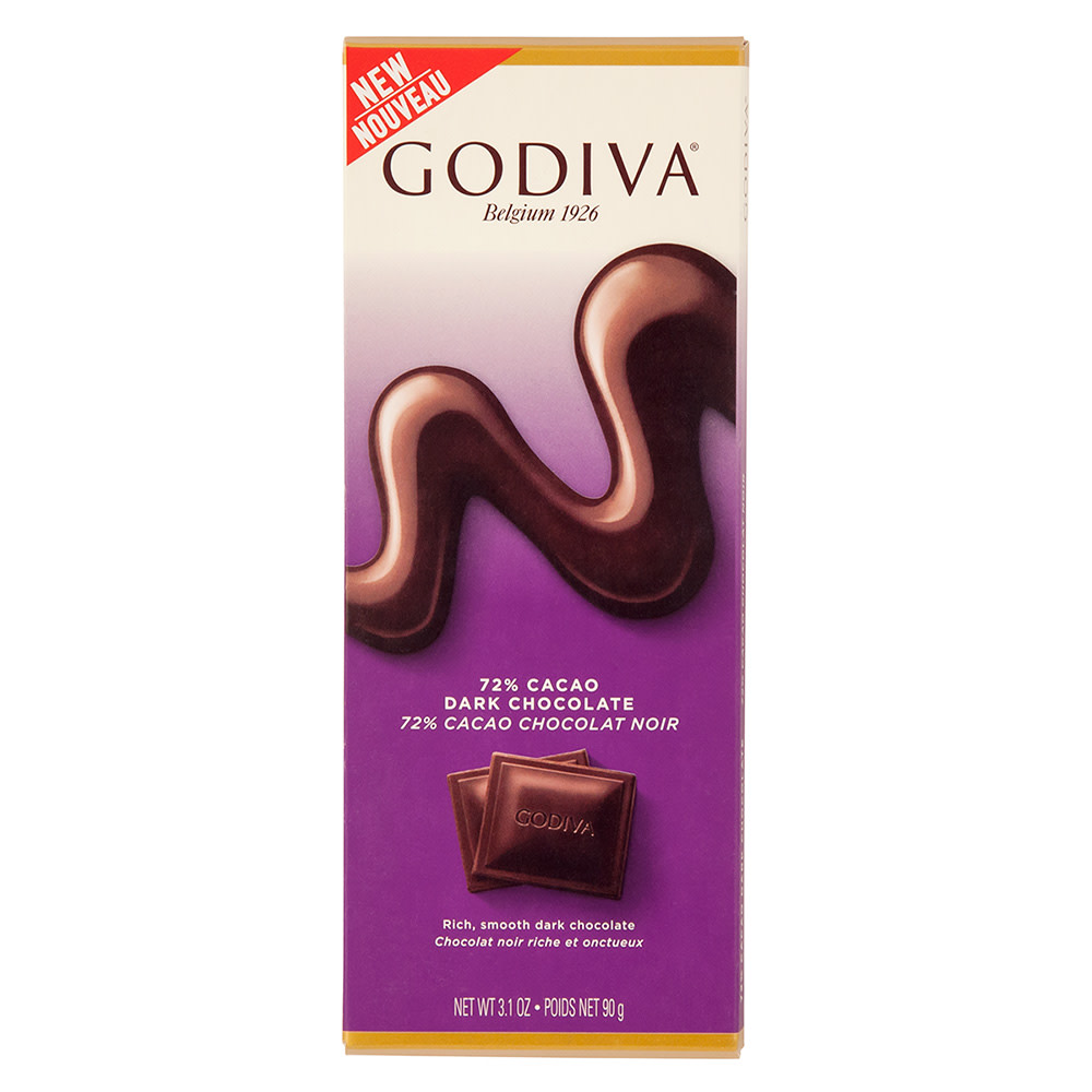 NEW Godiva 72 Dark Chocolate Bar. A Classic 72 Dark Chocolate Bar is sure to delight any true chocolate lover. It is scored into ten signature squares so you can break off a little piece of GODIVA every day or share with friends. 5 bars x 90g/3.1oz.