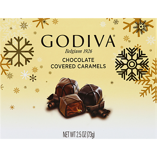 - The manufacturer of Chocolate Covered Caramels is Godiva.