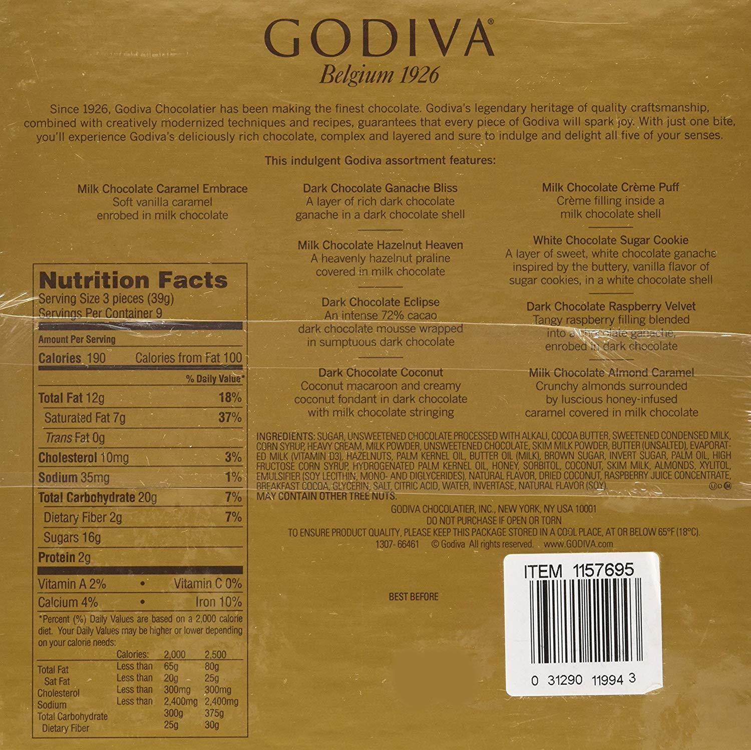 - The manufacturer of Assorted Chocolates is Godiva Chocolatier, INC..