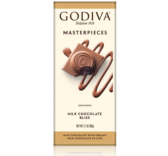 Gourmet Milk Chocolate Bar. Renowned Godiva Branding. Elegant packaging. Established in Belgium in 1926, Godiva Chocolatier has long been synonymous with gourmet chocolate, and as such, their products are always a consumer favorite. Godiva Masterpieces Milk Chocolate Bliss Bar is perfectly named as it contains a creamy milk chocolate center enrobed by Godiva's exquisite milk chocolate. The mouthwatering Milk Chocolate Bliss Bar comes in sophisticated packaging, making it a wonderful.