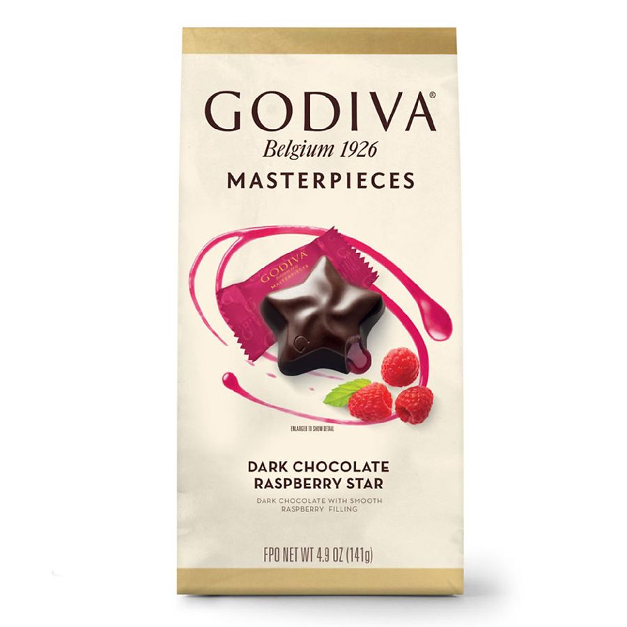 Godiva Chocolate, synonymous with luxury, handcrafts gourmet treats. Godiva Dark Chocolate Raspberry Star Truffles are filled with a luxurious raspberry filling. Packaged in a shareable sized pouch, Godiva Dark Chocolate Raspberry Star Truffles are a fruit infused indulgence sure to please the chocolate lover.