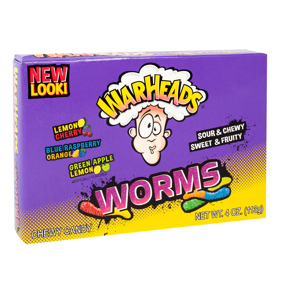 Lemon cherry. Blue raspberry orange. Green apple lemon. Artificially flavored. New look! Worms make your candy into creepy-crawly fun. With a yummy sour coating and a gummy sweet middle, they’re the perfect squirmy treat. Two fruity flavors in every worm!