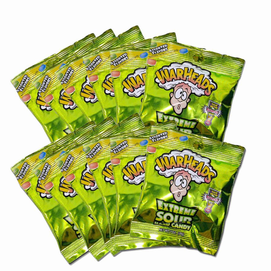 Deliciously sour hard candy Assorted flavors Vibrant foil bags. Give your customers the sour hit they crave with Extreme Sour Hard Candy from Warheads®. The punch-packing sour flavor of assorted fruity flavors keeps candy lovers of all ages returning for more. Attention-grabbing, ready-made display boxes make the perfect addition to your checkout counters and encourage impulse purchases. Flavors include: black cherry, apple, watermelon, blue raspberry, and lemon.