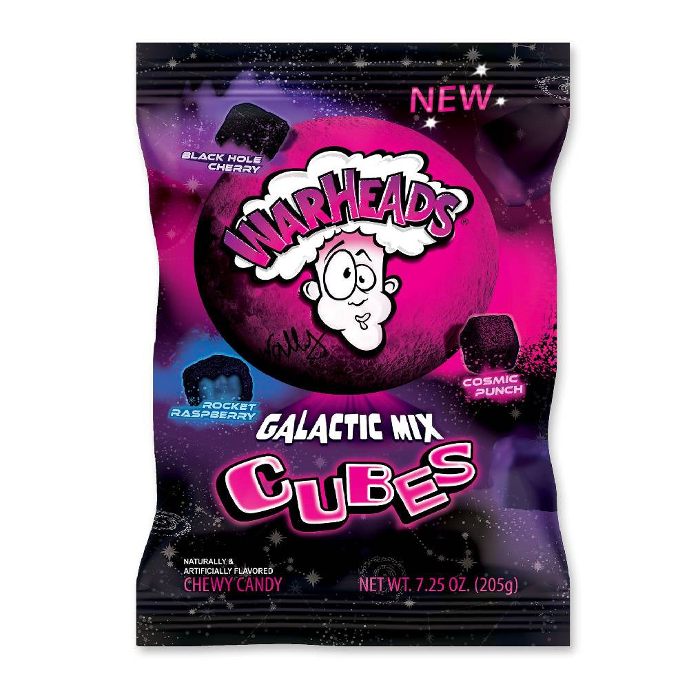 WARHEADS Galactic Cubes are a celestial mystery of the SOUR kind. These mildly sour and chewy Cubes are hiding a delicious secret flavor. Will you fall into Black Hole Cherry, get a Cosmic Punch of dark matter, or ride the Rocket Raspberry to the pink side of the moon? You won't know 'til you take your first bite.