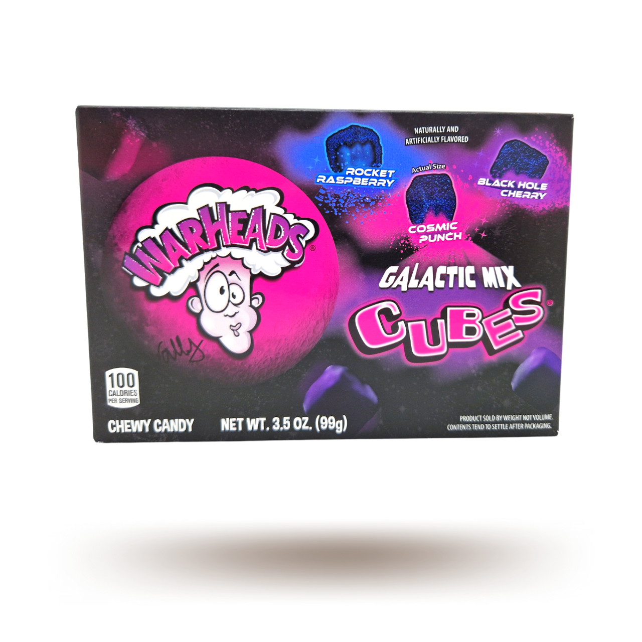 Blast off into a universe of sour and sweet with Warheads Galactic Cubes! These tantalizingly tangy candies come in a variety of futuristic fruit flavours, each cube engineered to deliver an intense sour shock followed by a sweet, fruity finish. Perfect for movie nights, sharing with friends, or satisfying your sour cravings, these cubes offer a multi-dimensional taste experience that's out of this world. Packaged in a convenient theatre box, Warheads Galactic Cubes are ideal for snacking during your favourite films or whenever you need a burst of bold flavour. Whether you're a long-time fan of Warheads or new to the realm of sour sweets, these galactic delights are sure to make your taste buds feel starstruck!