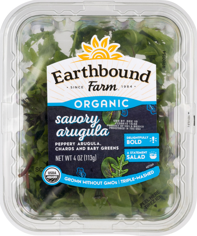 - The manufacturer of Organic Savory Arugula is Earthbound Farm.