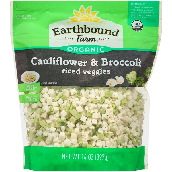 - The manufacturer of Organic Cauliflower & Broccoli Riced Veggies is Earthbound Farm.