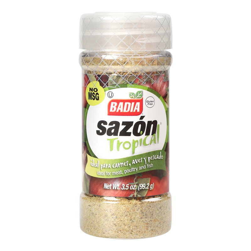 Ideal for meat, poultry and fish. No MSG. Gluten free. Add a different rhythm to your cooking with Badia Sazon Tropical. Sprinkle this savory concoction on beef, poultry or fish for a tropical twist that will have your taste buds dancing.