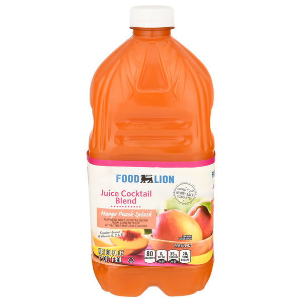 - The manufacturer of Splash Flavored Juice Cocktail Blend from Concentrate, Mango Peach is Food Lion.