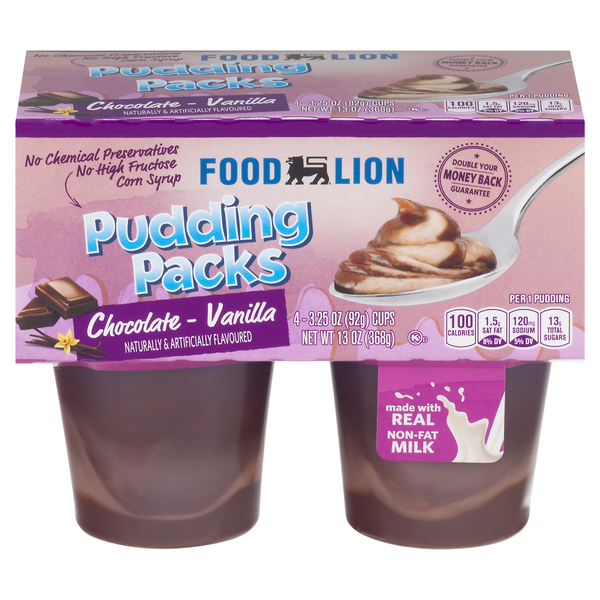 - The manufacturer of Chocolate-Vanilla Pudding Packs, Chocolate-Vanilla is Food Lion.