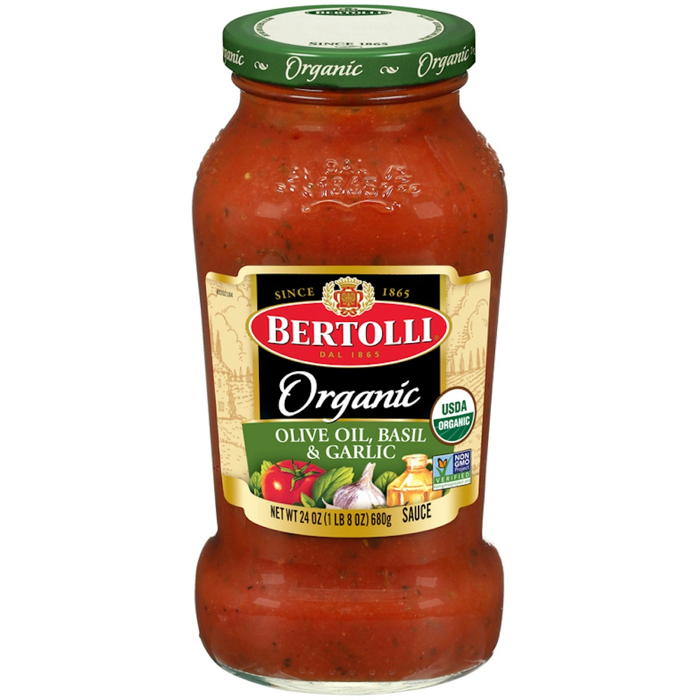 Simple is the Bertolli way. Enjoy authentic flavors with a 24 oz jar of Bertolli Organic tomato pasta sauce with Olive Oil, Basil and Garlic. Crafted from organic vine-ripened tomatoes, extra-virgin olive oil, basil, herbs, spices, and garlic, this pasta sauce brings timeless flavors to your table effortlessly. Free from artificial colors, it's perfect for easy, delicious meals like Eggplant Marinara and Chicken Florentine. Elevate your dining experience with stuffed peppers, flatbreads, or crostini. Simply pour over noodles for a quick weeknight dinner. Since 1865, Bertolli has made cooking simple and delightful. Experience the rich taste of culinary tradition with Bertolli spaghetti sauce. Refrigerate after opening to keep it fresh.