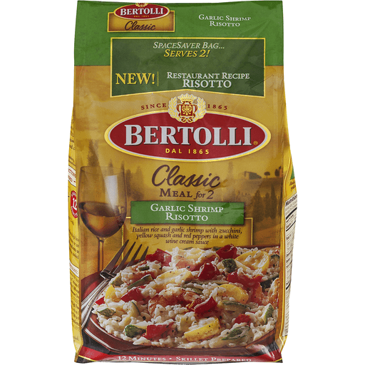 - The product category for Bertolli, Classic Meal for 2, Garlic Shrimp Risotto is Pasta & Noodles.