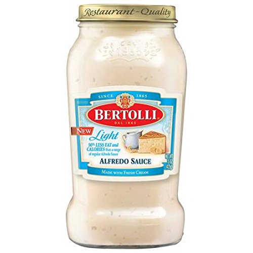 Enjoy the rich flavor of creamy alfredo, now with 50 percent less fat and calories than a range of regular Alfredo sauce. Bertolli Light Alfredo Sauce, made with fresh cream and aged Parmesan cheese, helps you to create classic Italian dishes such as Creamy Asparagus Chicken Risotto or Pesto Linguine Alfredo.
