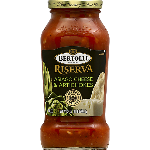 - The manufacturer of Asiago Cheese & Artichokes Riserva Sauce, Asiago Cheese & Artichokes is Bertolli.