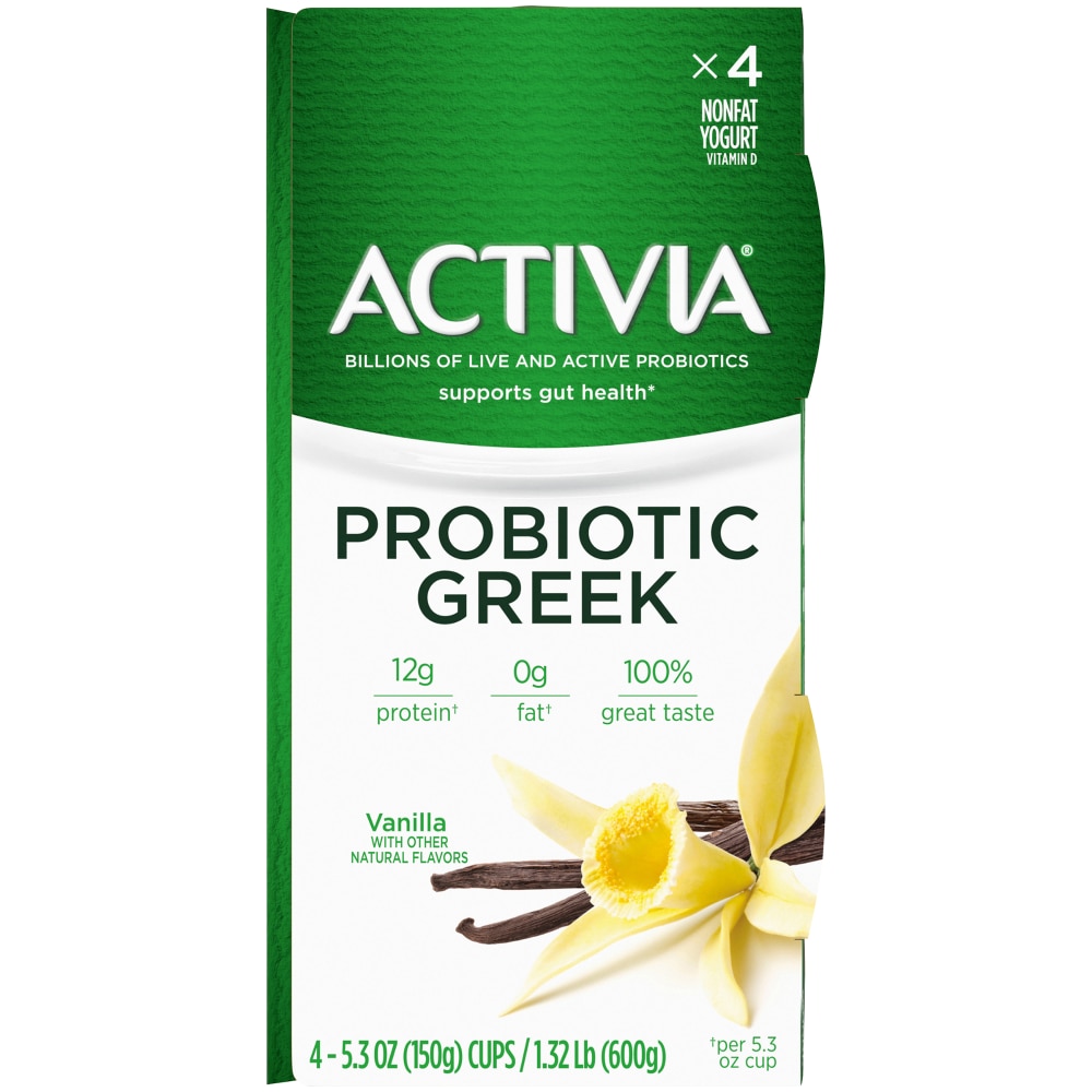 - The product category for Dannon, Activia, Probiotic Nonfat Greek Yogurt, Vanilla, Vanilla is Yogurt.
