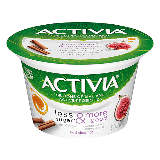 Activia Less Sugar* & More Good Probiotic Yogurt delivers that same great Activia taste, but this time, with less sugar*. Sweetened with honey and fruit, every spoonful is smooth, creamy, and full of fig and cinnamon goodness. This delicious, Non-GMO Project Verified yogurt not only provides protein and calcium, but billions of live and active probiotics as well. Best of all, it comes in single-serve cups, so you can treat your taste buds and your gut** while out and about. For the last 20 years, Activia has been supporting gut health research**. Every serving of Activia probiotic yogurt comes with four live and active cultures, plus Bifidus, our exclusive probiotic strain. With our wide and delicious selection of probiotic yogurts and smoothies, we make it easy to help support your gut** as part of a healthy lifestyle. *At least 40% less sugar than our regular Activia Greek nonfat yogurt.
