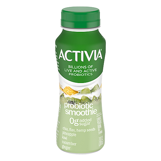 - The manufacturer of Chia, Flax, Hemp Seeds, Pineapple, Kiwi, Cucumber, Ginger Probiotic Smoothie Lowfat Yogurt Drink, is Activia.