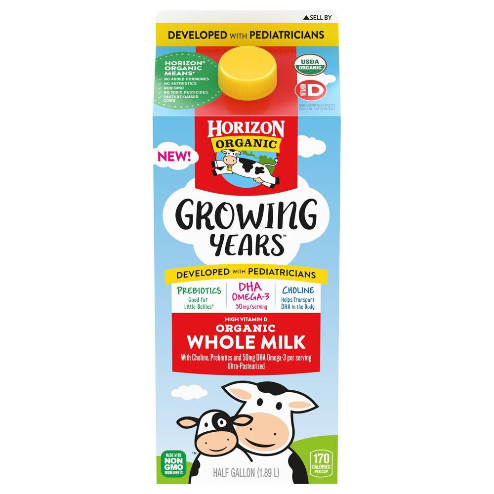 We partnered with pediatricians to identify key nutrients for growing kids, ages 1 to 5. Every delicious glass of Growing Years milk provides 50mg of DHA Omega-3 to help support brain health, along with prebiotics and a good source of choline. Give kiddos the nutrition they need in the organic milk they love.