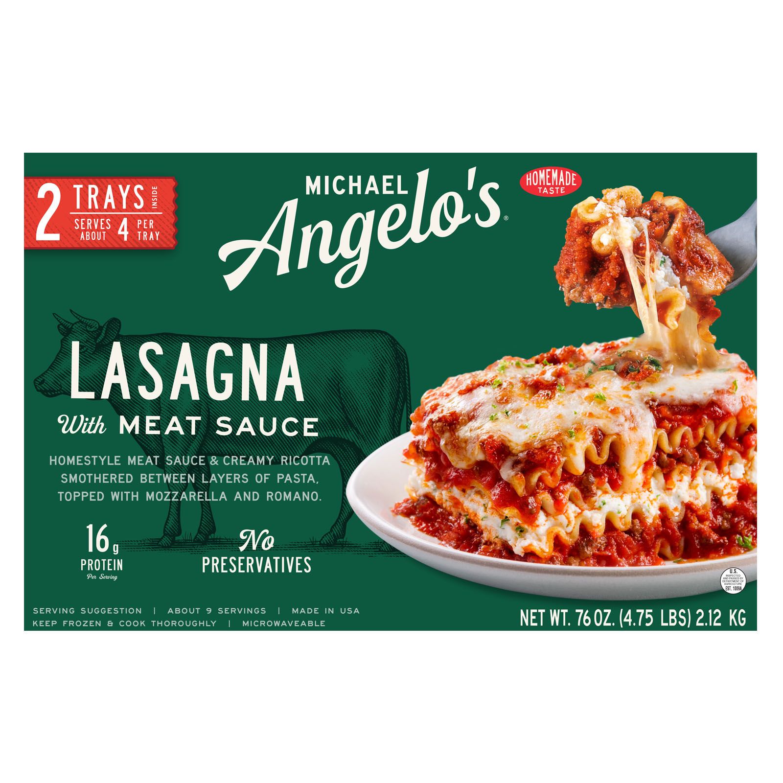 - The country of origin for Lasagna with Meat Sauce is United States.