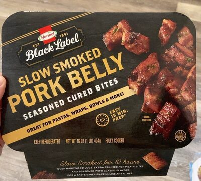 - The manufacturer of Slow Smoked Pork Belly Seasoned Cured Bites, Slow Smoked is Hormel.