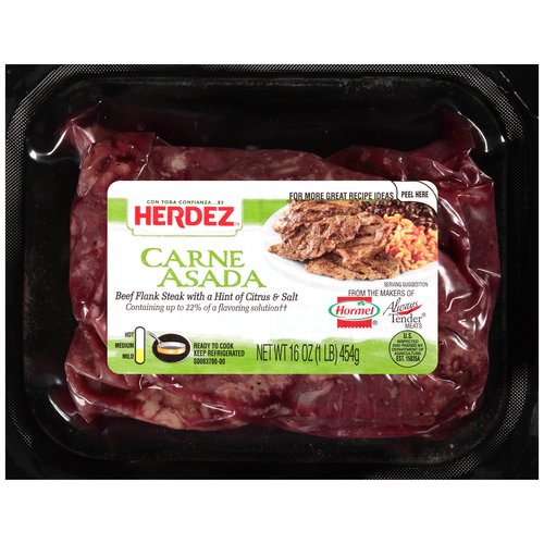 - The manufacturer of Carne Asada Beef Flank Steak with a Hint of Citrus & Salt, Carne Asada is Herdez.
