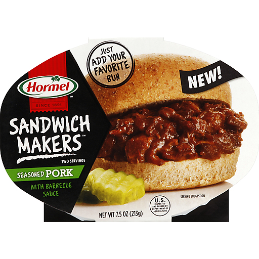 - The manufacturer of Sandwich Makers Seasoned Pork with Barbecue Sauce is Hormel.