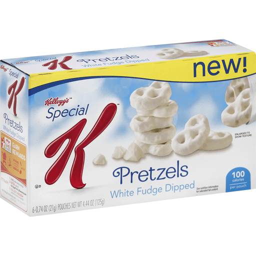 - The manufacturer of White Fudge Dipped Pretzels, White Fudge Dipped is Special K.