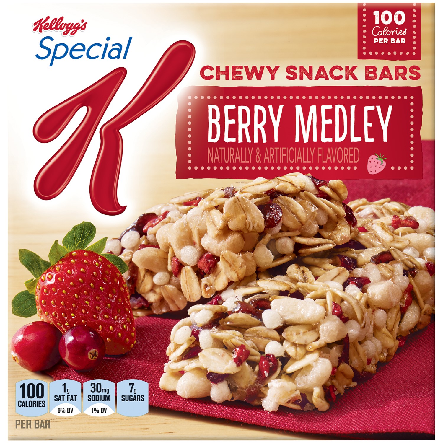 Deliciously satisfying Special K Chewy Snack Bars deliver all of the flavor you crave without the guilt. Includes 1, 5.28-ounce box of 6 irresistibly crafted Red Berries bars. The delightful combination of fruit pieces and crispy rice indulges your taste buds with 90 calories per bar. With no artificial flavors, every bite is a feel-good way to delight your sweet tooth at home or work, after yoga, or wherever life takes you; keep Special K Chewy Snack Bars in your pantry as a convenient snack that's easy to grab and go. Stash some in your office desk, car, or tote so you're ready whenever cravings strike. Make Special K Chewy Snack Bars your go-to for a great-tasting treat that truly satisfies.