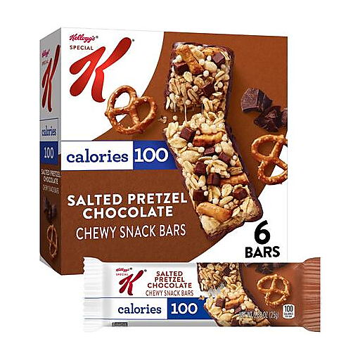 Deliciously satisfying Special K Chewy Snack Bars deliver all of the flavor you crave without the guilt. Includes 1, 5.28-ounce box of 6 irresistibly crafted Salted Pretzel Chocolate bars. The delightful combination of crunchy pretzel bits, chocolate, and crispy rice indulge taste buds with 100 calories per bar. Every bite is a feel-good way to delight your sweet tooth at home or work, after yoga, or wherever life takes you; keep Special K Chewy Snack Bars in your pantry as a convenient snack that's easy to grab and go. Stash some in your office desk, car, or tote so you're ready whenever cravings strike. Make Special K Chewy Snack Bars your go-to for a great-tasting treat that truly satisfies.