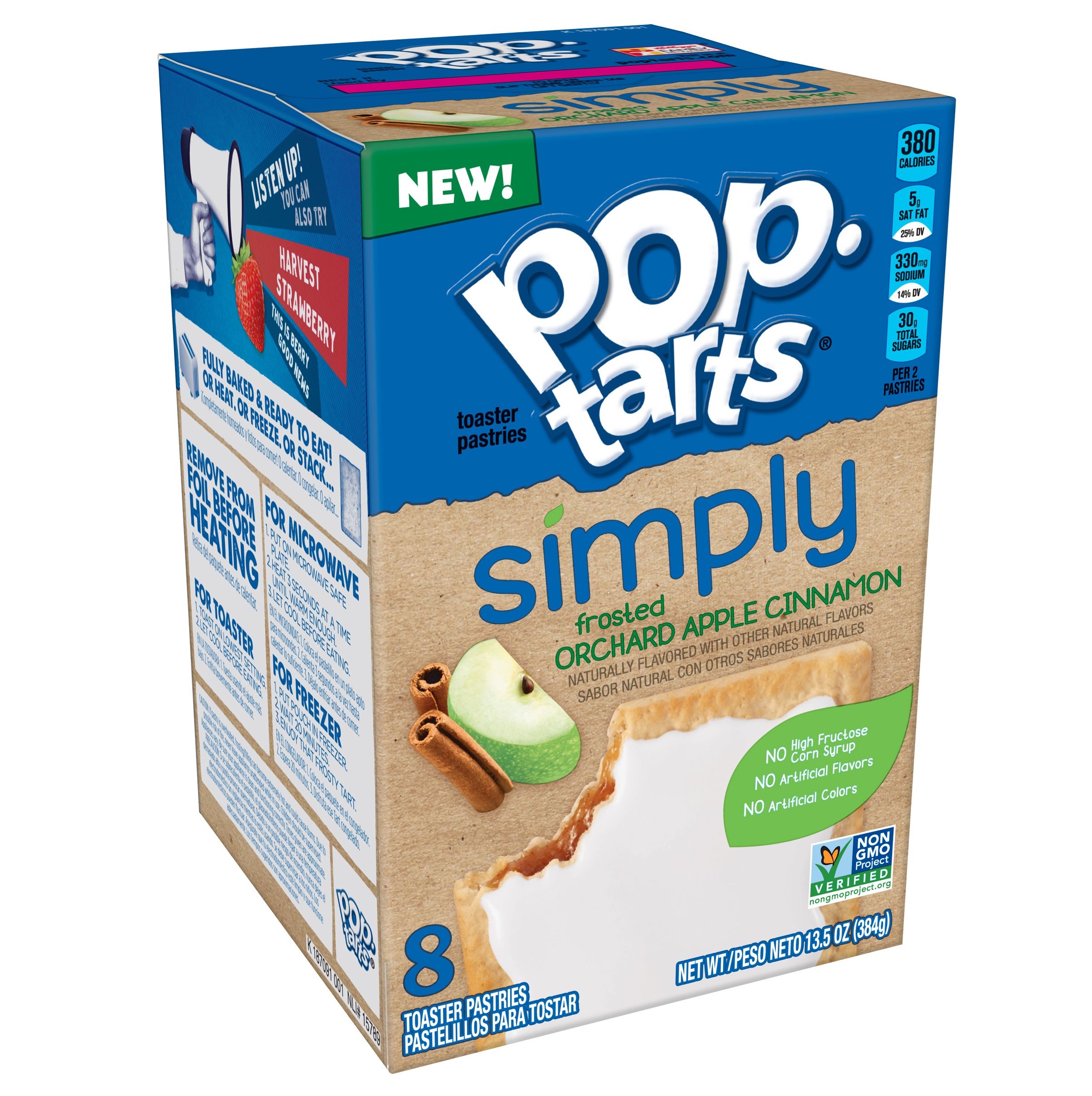 Simply Pop-Tarts Frosted Apple Orchard Cinnamon Toaster Pastries are a delicious treat to look forward to. Jump-start your day with a sweet and fruity blast of gooey, apple cinnamom-flavored filling encased in a crumbly pastry crust, topped with yummy frosting. A quick and tasty anytime snack for the whole family, Pop-Tarts Toaster Pastries are an ideal companion for lunchboxes, after-school snacks, and busy, on-the-go moments. Not just at breakfast, the versatile deliciousness of Pop-Tarts fits into your lifestyle just about anywhere there’s time for a snack. Store them in your desk drawer for a pick-me-up at the office, keep them on hand in your pantry for a sweet after-dinner treat, or even bring some in the car for a satisfying snack on the road. These toaster pastries also make welcome additions to care packages, goodie bags, and gift baskets—a pleasant surprise friends and family will be delighted to unwrap. Just pop your Pop-Tarts Toaster Pastries in the toaster for a warm, crispy crust, heat them in the microwave, or enjoy them right out of the pouch with a glass of ice-cold milk.