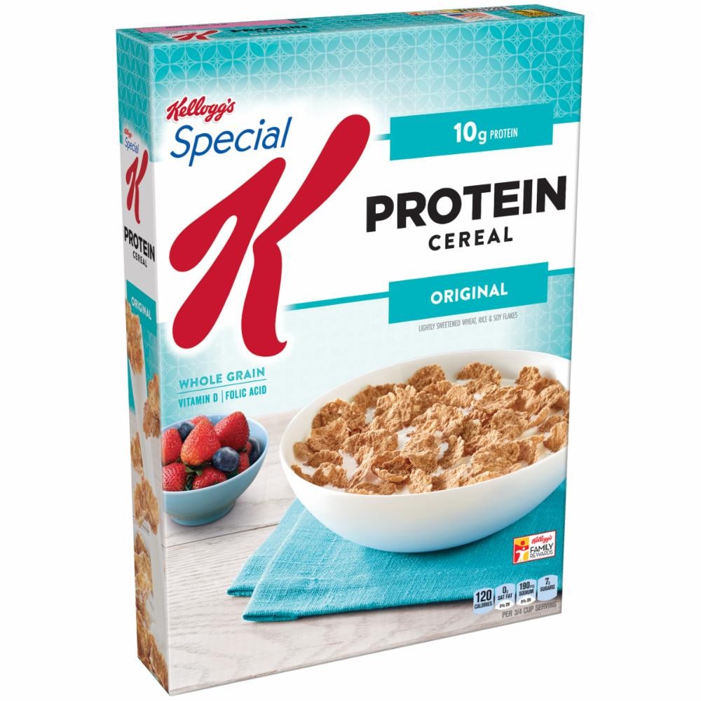 Lightly sweetened wheat, rice and soy flakes. 10 g protein. 3 g fiber. Satisfies hunger longer (When selecting Special K Low Fat Granola cereal, choose either 2/3 cup of skim milk or fruit.). Drop a jean size in 2 weeks (Consult your physician before starting any diet or exercise program. Average waist circumference reduction when replacing meals with two cereal meals is 1.3 inches. Weight loss may vary.) as part of the Special K Challenge. Easy open bag. USA proud sponsor.