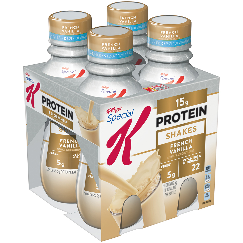 24 bottles of 10-ounce Special K French Vanilla protein shake. Creamy, sweet recipe with milkshake flavor and smart nutrition. Each bottle contains 10 grams of protein and 5 grams of fiber. Fortified with essential vitamins and minerals. Resealable lid; other flavors include chocolate and strawberry.