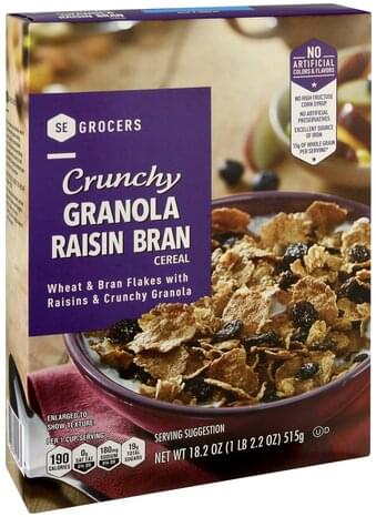 - The manufacturer of Crunchy Granola Raisin Bran Wheat & Rice Flakes with Raisins & Crunchy Granola Cereal is SE Grocers.