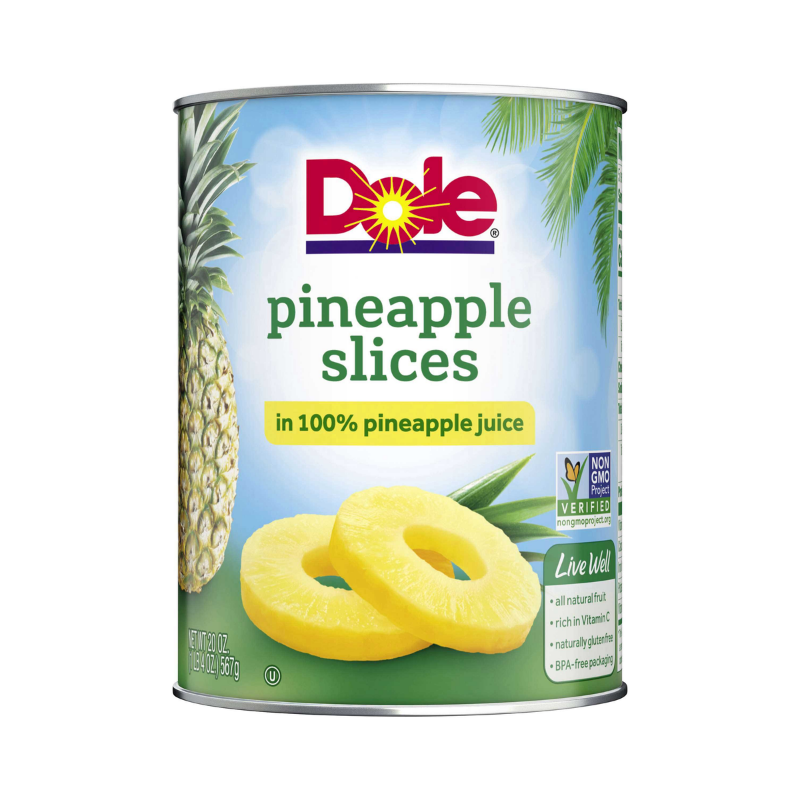- The manufacturer of Pineapple Slices in 100% Pineapple Juice is Dole.