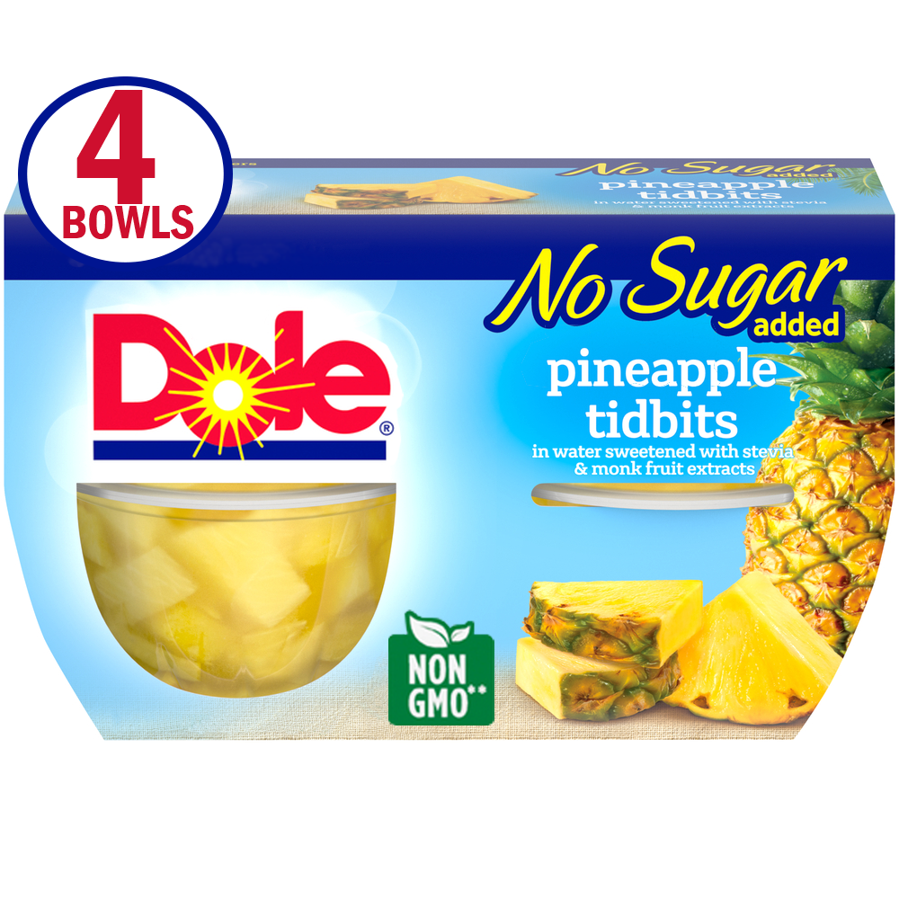 - The manufacturer of No Sugar Added Pineapple Tidbits in Water Sweetened with Stevia Extract, Water is Dole.