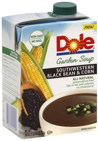- The manufacturer of Southwestern Black Bean & Corn Garden Soup, Southwestern Black Bean & Corn is Dole.