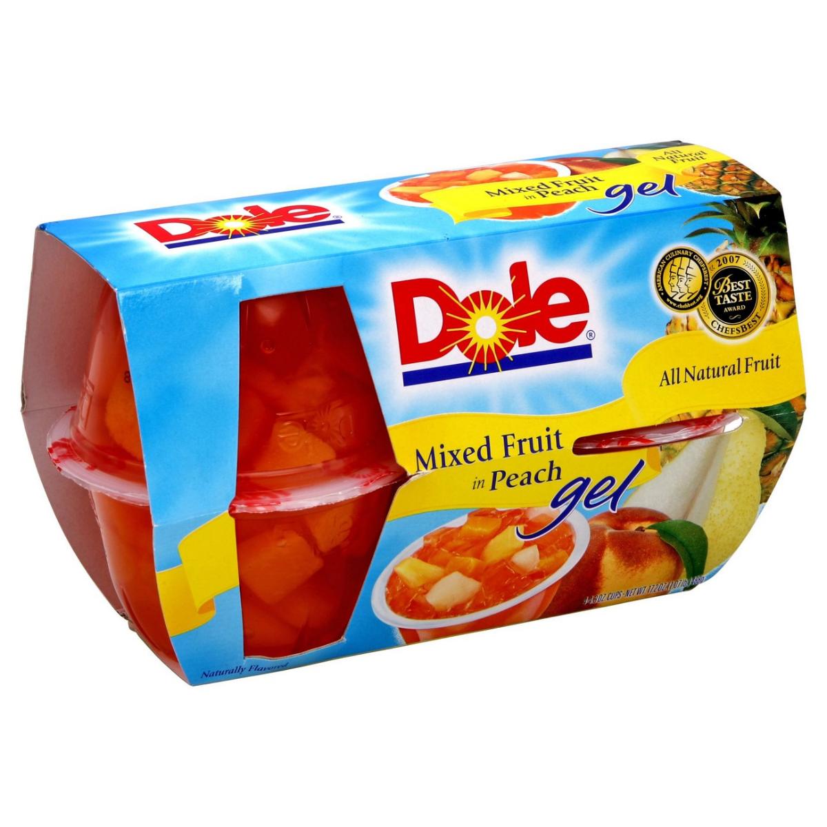 - The manufacturer of Mixed Fruit in Peach Flavored Gel, Peach is Dole.