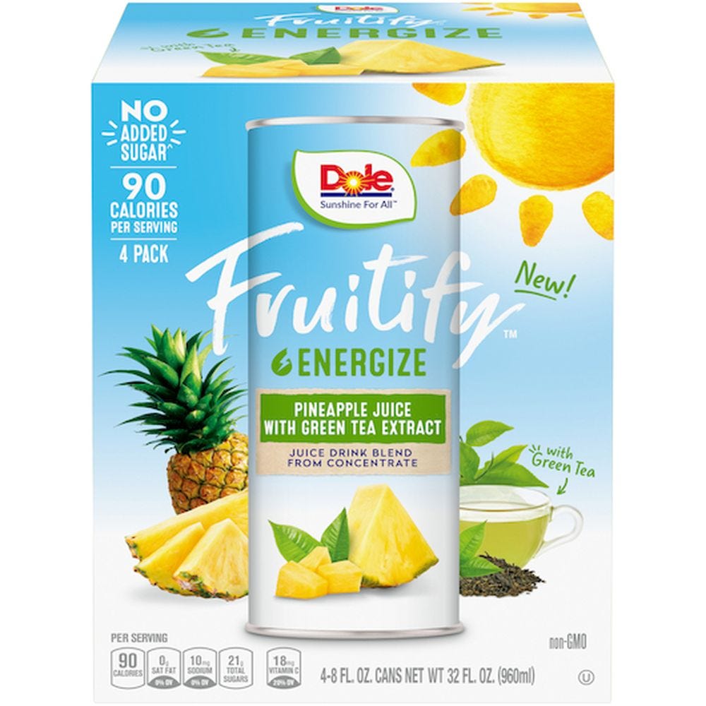 - The manufacturer of Energize Pineapple Juice with Green Tea Extract Juice Drink Blend, Energize is Dole.