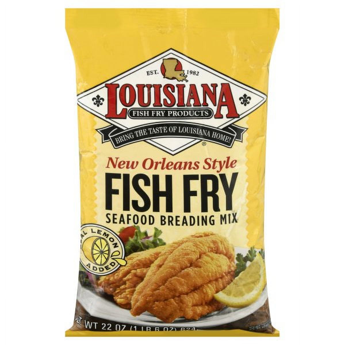 Louisiana Fish Fry New Orleans Style Lemon Fish Fry 22 oz bag Our famous seasoned fish fry, with just the right touch of lemon already in the mix. Coats approximately 6-7 pounds of fish. Enjoy Louisiana Fish Fry Seasoned Fish Fry, with a touch of lemon and a corn flour base for a smooth texture…New Orleans style!