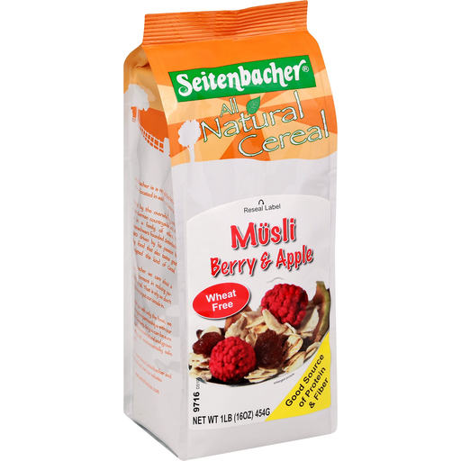 No artificial colors; No artificial flavors. Wheat free; Good source of protein & fiber.Cholesterol free; Low in sodium; No artificial sweeteners; No preservatives. Made for people who like great musli, like we do! Enjoy hot or cold with milk, yogurt, juice or plain. Seitenbacher is a natural food manufacturer located in South West Germany. Inspired by the overwhelming nature of the German countryside and while born in a family of millers, Willi Pfannenschwarz founded Seitenbacher in 1980 driven by his passion for healthy food that also tastes great he designed this kind of Cereal. To provide you with only the best, we work in long term partnerships with our farmers in Germany. So you can be sure this Cereal is the most natural and grown on healthy and environmentally safe farm land. We know that food is what makes your body do the things you want to do everyday. We want to provide you with what you need to get ready for your day. The perfect Breakfast Cereal. Also delicious for a quick office lunch or healthy snack throughout your day. At Seitenbacher we care most about your health so we use the best all natural ingredients. The Goodness of Whole Grains. Providing fibers. Providing protein. Sealed in a keep fresh pack. Best all natural German grains. That is what makes Seitenbacher not only a part of a good breakfast. Enjoy with milk, yogurt or plain. For people who love great cereal, like we do! www.seitenbacher.com.