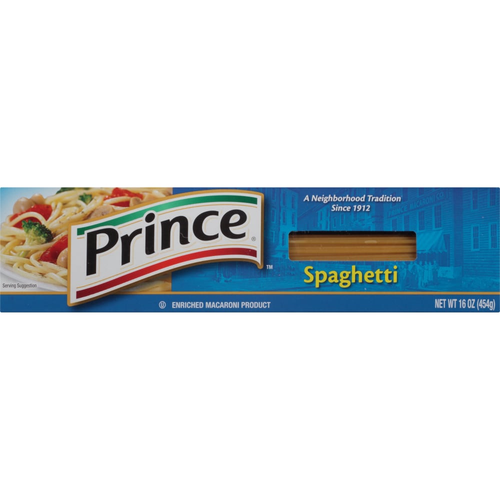 - The product category for Prince, Enriched Macaroni Product, Spaghetti is Pasta & Noodles.