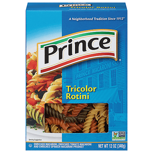 - The manufacturer of Prince, Enriched Tomato and Spinach Macaroni Product, Tricolor Rotini is Prince.