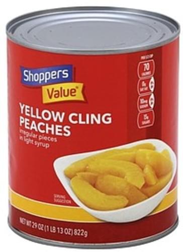 - The manufacturer of Yellow Cling Peaches Irregular Pieces in Light Syrup is Shoppers Value.