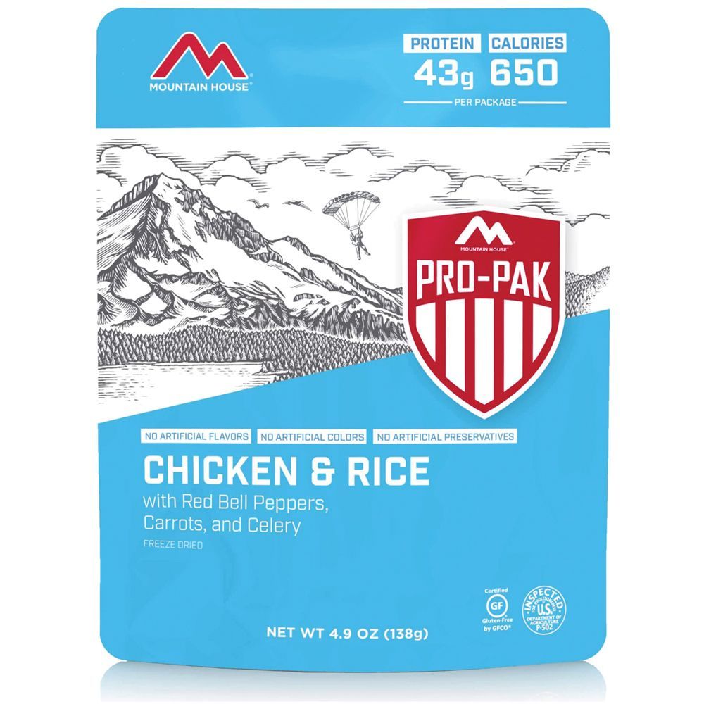Carbs and protein are what you need to refuel when you push your body to the limits. Super quick and easy to make, just add hot water and in 8-10 minutes you’ll have a hot tasty meat to eat once you reach the summit. Made with real chicken, rice and pimentos. Compared to our regular pouches Pro-Paks are vacuum sealed for compactness and so they won't expand at altitude. Pro-Paks also contain slightly less food compared to our regular sized pouches.