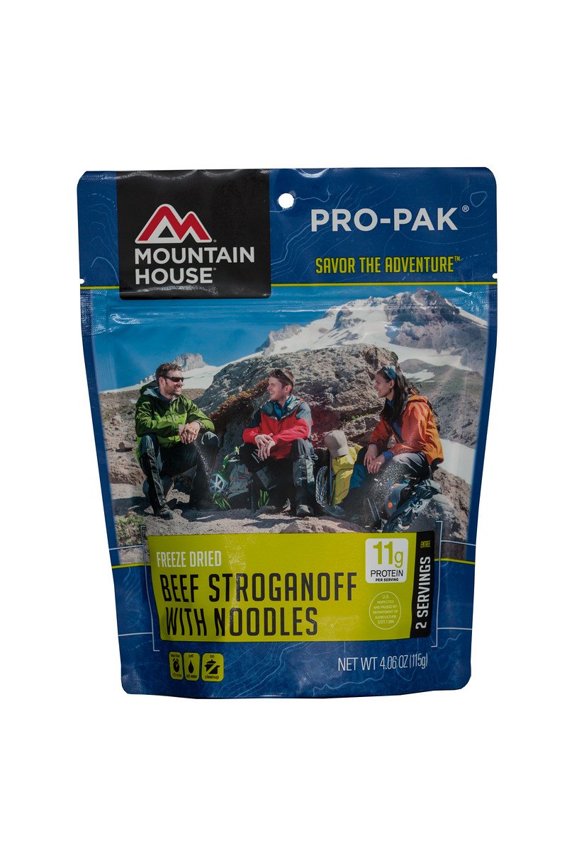 The awe and majesty of the view is one of the rewards of climbing mountains. But the laws of nature also mean you've spent a good amount of energy getting there. Just because you're miles away from the nearest kitchen doesn't mean you have to eat like it. This beef stroganoff is the real thing. It's made with tender, all natural beef, savory mushrooms and onions with noodles in a rich sour cream sauce. It's so good, you'd never guess this is freeze dried food. Compared to our regular pouches Pro-Paks are vacuum sealed for compactness and so they won't expand at altitude. Pro-Paks also contain slightly less food compared to our regular sized pouches.
