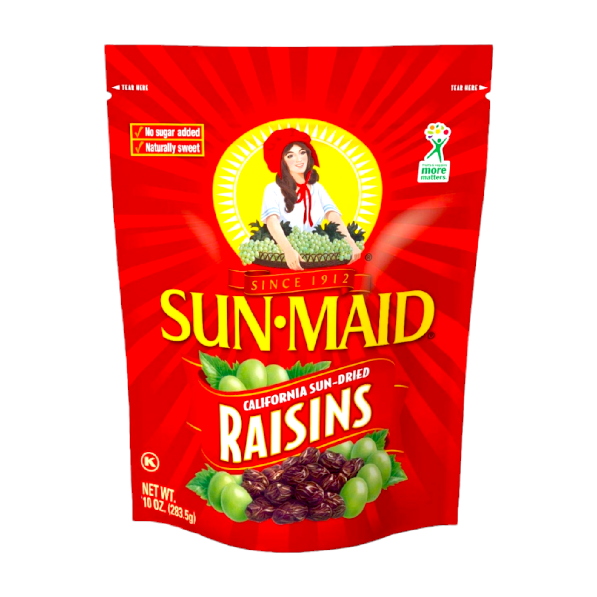 "Made with nothing but grapes and California sunshine, Sun-Maid® Raisins' timeless and trusted goodness has been a classically delicious dried fruit snack for kids and grown-up kids alike since 1912. Our process has never changed, and neither have our delicious California Sun-Dried Raisins - just simple, whole fruit and Non-GMO goodness, dried by the sun. Delicious Sun-Maid® Raisins are a convenient and tasty low-fat snack with less than 120 calories per serving. Due to the dehydration that takes place in dried fruits, raisins have more concentrated nutrition levels than grapes, making them a wholesome and easy snack for kids and adults alike.".